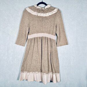 Forla Paris Dress Womens M Beige Cotton Blend Crinkle Pleat Midi Fairy