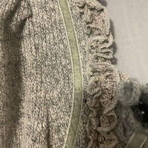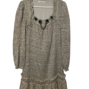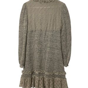 NWOT Flora Paris Dress Gray Slate Knit, Line Black and Grey Ruffle Trim with Trim Detail on Sleeve