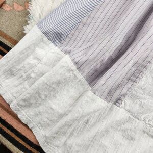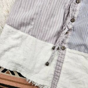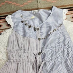 Mixed Stripe print, brass antique looking buttons, Embellishments on one side of collar. A mix of nautical boho Preppy