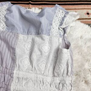 Forla Paris Women's Mixed Medium Stripe Eyelet Lace Boho Nautical Preppy Women's Small
