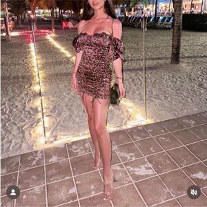 This elegant floral dress features a stunning black and pink design. Perfect for any occasion, it offers a flattering fit and stylish look. New, no tags