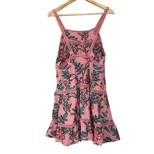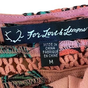 Floral embroidery brings vivid, feminine style to this For love & Lemons mini dress in a size medium. Has a Tiered ruffled skirt and scrappy back detailing that compliments your body. A Beautiful mauve rayon crepe shade with a floral print and contrast inset trims. Finish this must-have look with a pair of wedges or transition into fall with a chunky sweater and ankle boots! Unlined. Pullover/pull-on style.