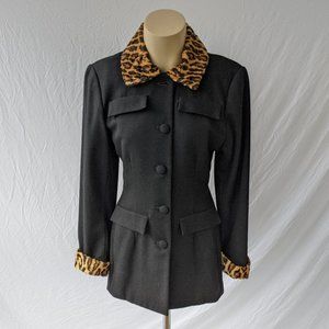 gorgeous coat, very flattering! good preowned condition. missing top button, but features a small button snap, so it can still be closed all the way.