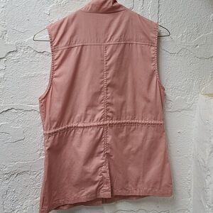 Light Rose pink vest featuring a dstring adjustable waist, a zipper snap button enclosure, 3 fold pockets with buttons and loop button shoulder accents. Brand new with tags from Formė Modė. Size jr small