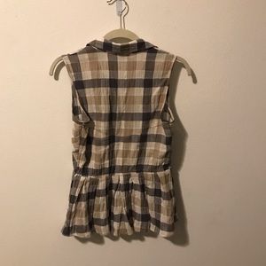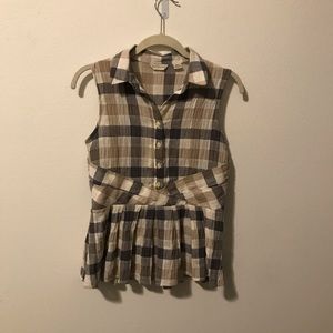 Grey and white collared top. Very flattering on the waist and the hips. Has zipper on the side for ease.