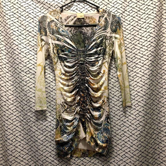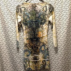 Really cute top! No marks, stains, or holes. Worn a couple of times, but in excellent shape. Ready for a new home! Awesome designs with many colors.