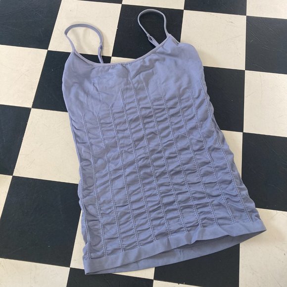 This tank top hugs you so well. It is ribbed so fits beautifully to your form! With a built-in bra, this tank top comfortably and effectively holds and pushes up your bust.