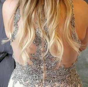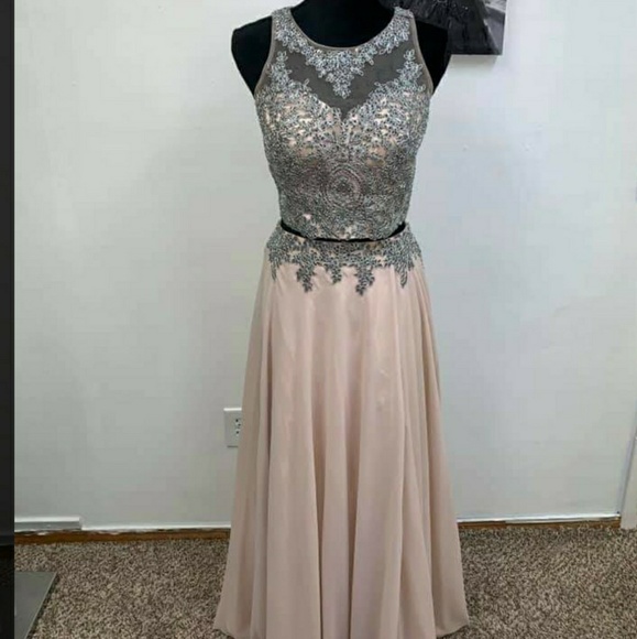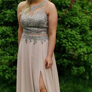 Light dusty Pink two piece formal. Tag reads size 11 but altered to fit 6/8. Only worn once. In beautiful condition! Silver accents.