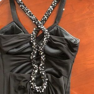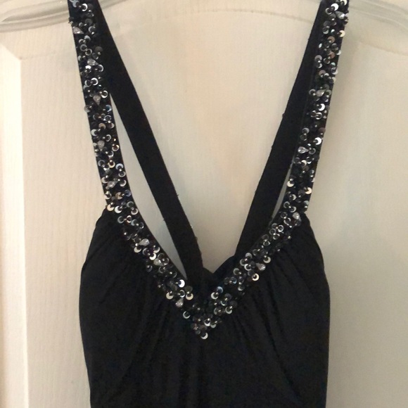 Sexy black long dress. Embellished with sequins on straps and beautiful detailed back.