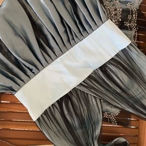 Formal, blue with black overlay, design with sequins at bottom, short