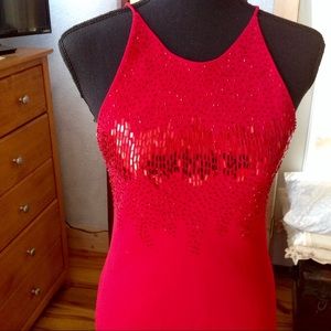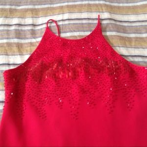 Red, red red! Simple a-line design, fits a 6 like a glove. Fully lined, spaghetti straps, fabulous!
