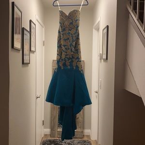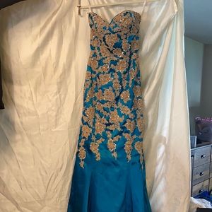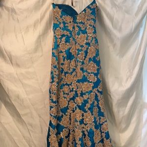 Formal Jovani strapless train dress with embroidered lace and sequins PROM!