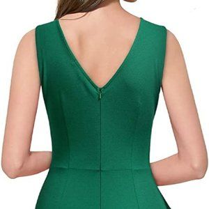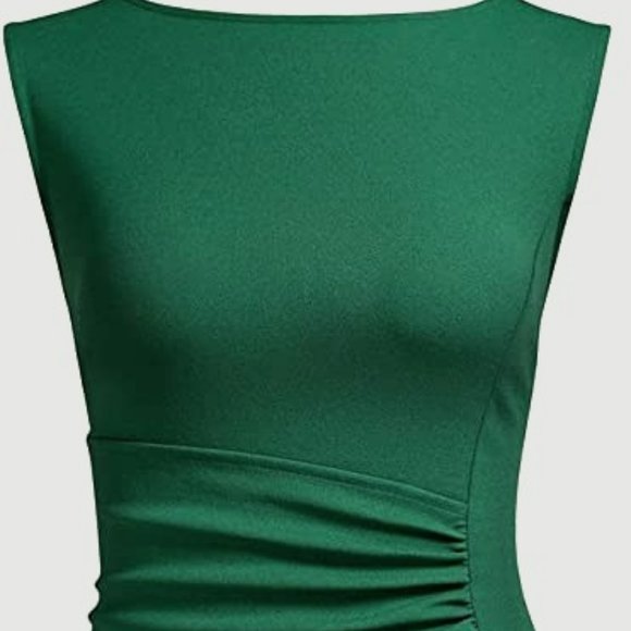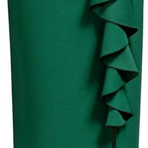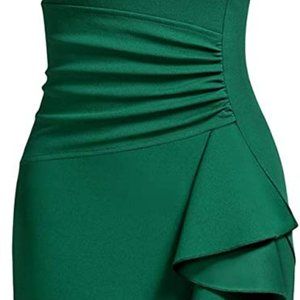 Knitee Women's Formal Ruched Ruffles Split Wedding Maxi Dress Dark Green