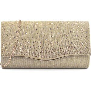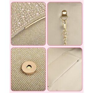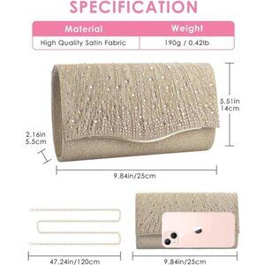 UNIQUE DESIGN - Front flap with magnetic button closure. Made of high quality satin fabric and decorated with clear rhinestone overlay, sparkly glitter rhinestones in varied sizes on flap.