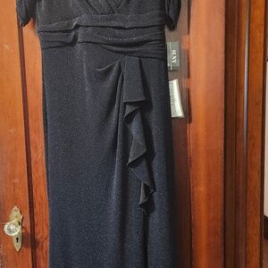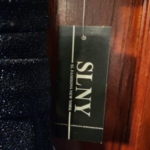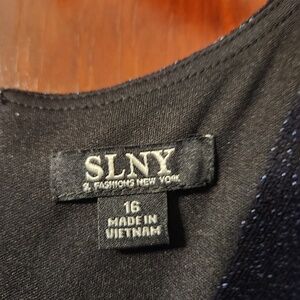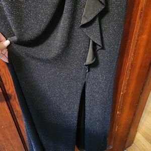 SLNY formal black sparkle gown with cinched waist and side slit. Stretch material. Never worn.