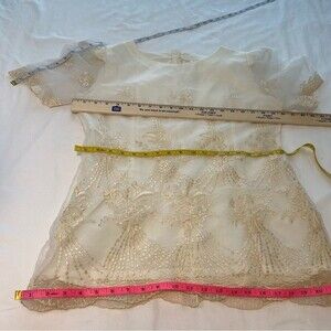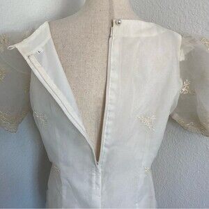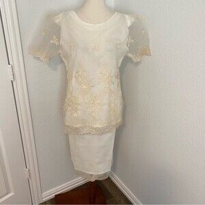 Formal Bridal 2 Piece Ivory Embroidered Sheer Vintage Top Midi Skirt Unique SZ L