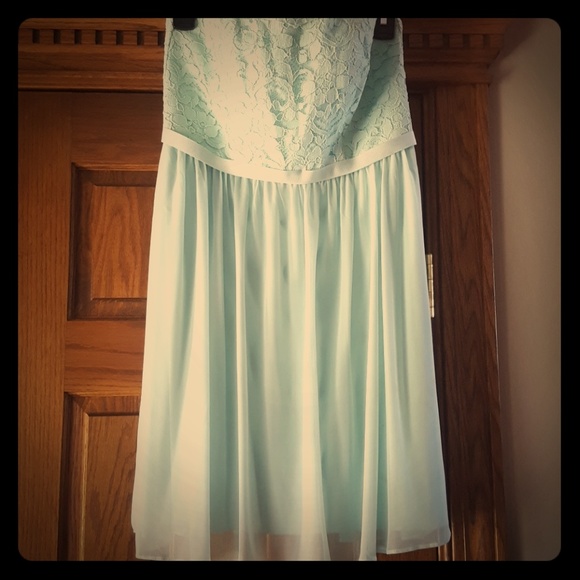 Mint green strapless dress. Worn once for a wedding. Size 6. Excellent condition!