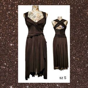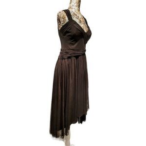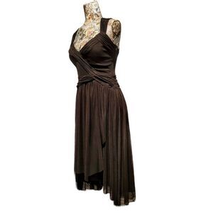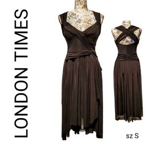 London Times Neutral Brown Formal Cocktail Hi Lo Dress in EXCELLENT condition like NEW! Only worn once. Marked a sz 8 but measures like a size small. Perfect for any occasion wedding Cruise Evening Cocktail party Prom Homecoming Dance. See photos for details and approximate measurements. Zips up the side. Fully lined.