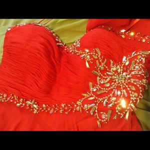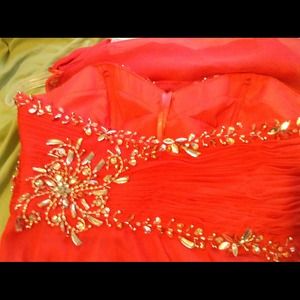 Long chiffon skirt. Beaded and fitted bodice. Was taken in on top, can fit B-D cup sizes. Beautiful!