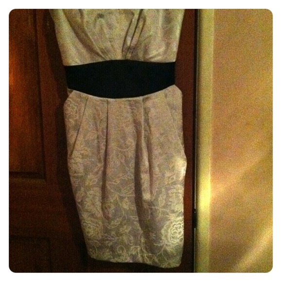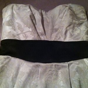Mainly silver with flowery design on fabric. Heart shaped neck and black sash that ties to the back (size 11)🎀