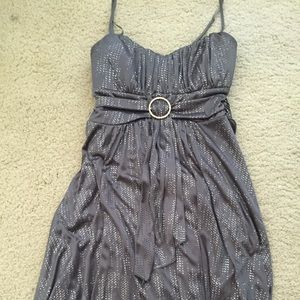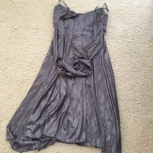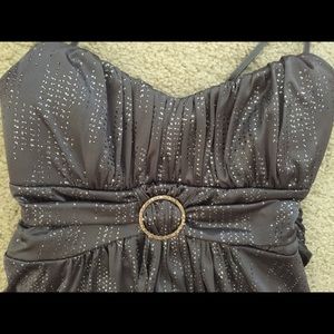 Glittery Smoke Grey Dress with skinny straps and ties in the back. ( has a lining)! Falls to the knee.