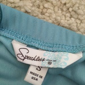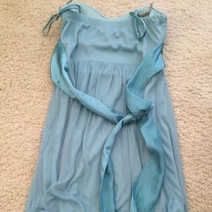 Aqua knee length formal dress with glitter and spaghetti Straps with gems.( lined)