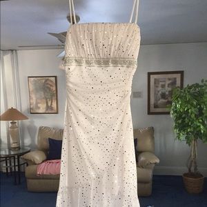 Formal white dress with silver sequence. Length comes to knees. Size medium. Only worn once.
