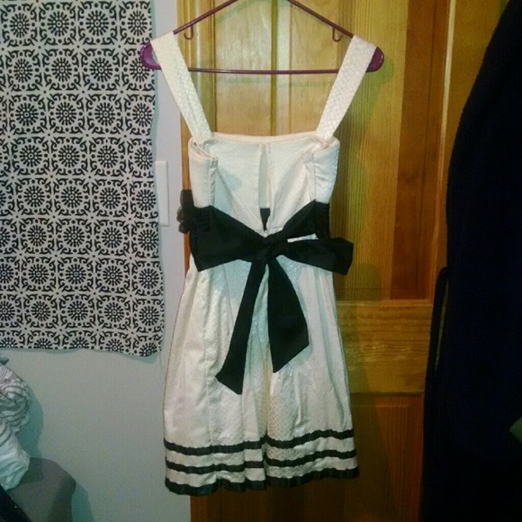 Cream color with embroidered details, black ribbon and flower under bust, thick straps. Worn once.