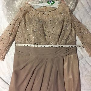 Beautiful Formal Dress! Fully lined. Not sure on the size but a woman size 14 wore it. Worn a couple hours for a wedding. 3/4 sleeves. A little stained on the bottom of the dress (pictured) but hardly noticeable, if at all. ❗️Will consider reasonable offers ❗️