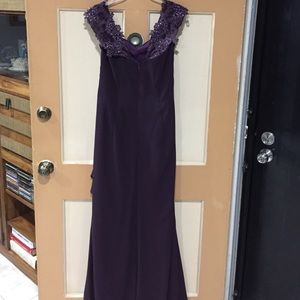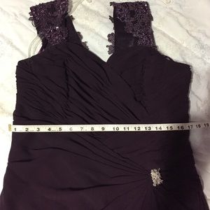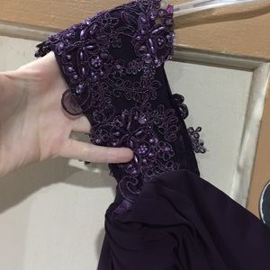 Deep purple formal dress. Worn a couple hours for a wedding. Sleeves are removable. Can be worn with both sleeves, one or neither. Great condition❗️Like new ❗️ Will consider reasonable offers. Size on dress says 20 but person that wore it is a 14.