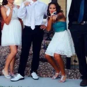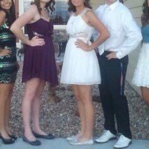Size 7 worn for homecoming one time for just a few hours and was bought brand new. In perfect condition, no flaws. Paid 150 for it