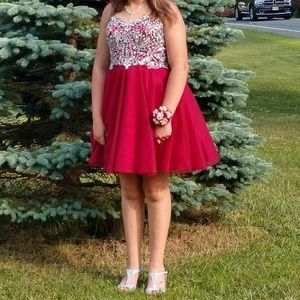 Beautiful Marsala dress Size 12, unaltered. This dress was worn by my daughter for 2 hours. Paid $268 and is a steal at this price. Intricate detail, perfect condition. Model is 5'4".