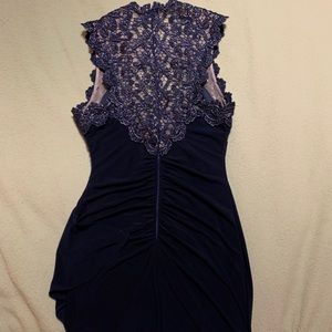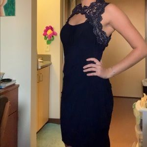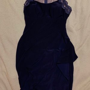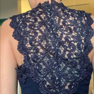 Dark Navy, Beautiful Sparkly Lace trim, Extremely flattering, Size 6, Stretches to your figure, 26” waist, 35” bust, 37” butt