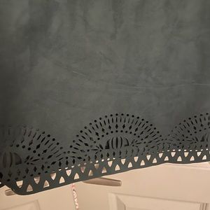 Vince Camaro size 4. Dark Green. Polyester and spandex mix, feels like suede. Short sleeve. Low V gold zipper back.