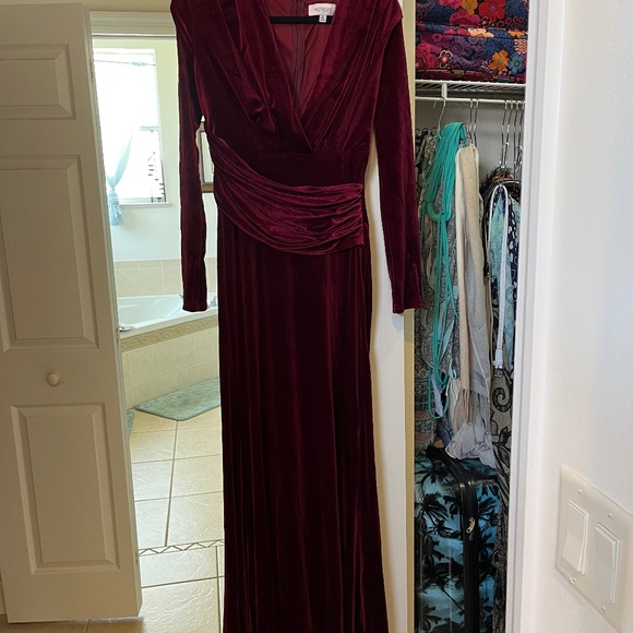 Burgundy formal velvet dress size medium (8-10) stretch form fitting flattering