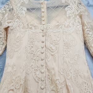 Formal Dress Jacket Set Size 10 Champagne Gold Beaded Lace Chiffon Sheath Party