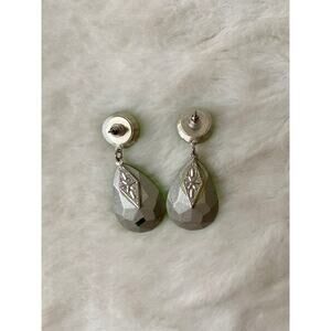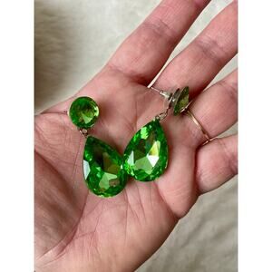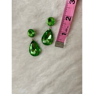 Beautiful green crystal-looking formal earrings. Would be great worn to a prom, homecoming, any kind of event or party, or just daily life if you want! They’re in green condition but just have some minor chipping of the paint on the back, but this isn’t noticeable when wearing. I originally purchased these at a high-end boutique that sells prom dresses to wear to my prom!