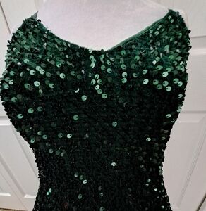 Formal Emerald Green Sequin Gown With Thigh High Slit