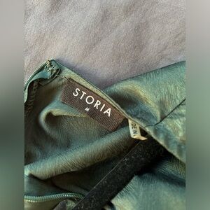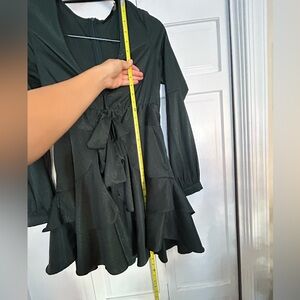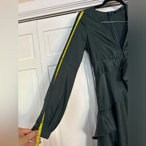 Stunning emerald green romper (my evening sun natural lighting pics don't do it justice), perfect for a wedding guest, cocktail hour, or other opportunity to get dolled up for a dressy event! It shines slightly in the light and the ruffles are very flattering for the booty.