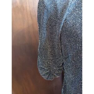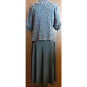 Formal Event Womens Small Petite 6P Black Silver Stretch Midi Dress & Jacket Set