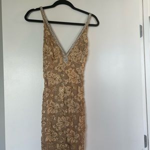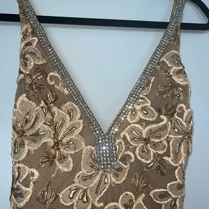 New with tag. Size large but fits a small. Great stretch and material. Above knee dress