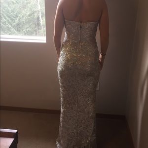 Silver/ nude silver gown. Worn once in perfect condition! I'm 5' 110 34A and this dress looked amazing!