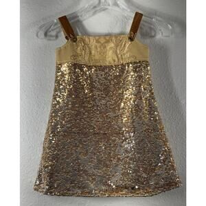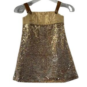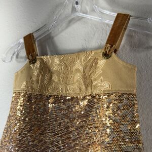 Formal Dress Gold Sequin Elegant Formal Zipper Tie Shoulder Kid Girls Size 6