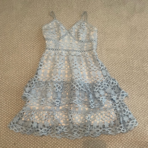Cute formal mini dress with floral lacing. Good condition