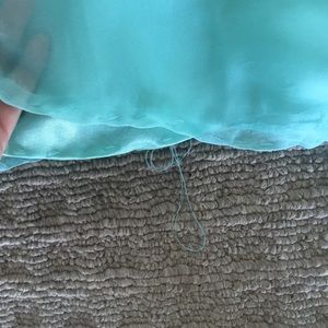 Prom dress from David Bridal tag cut because it was uncomfortable, was hemmed not well and straps added so can be easily removed. Perfect dress for big boobs/smaller bottom women 10 up top 8 below