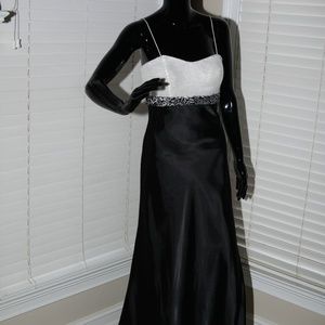 Full length formal prom dress black and white with white sequined top. Size 4. New w/tags