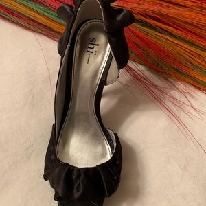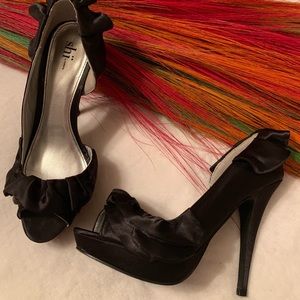 Fun Ruffled stain peep toe pumps. Slightly worn. Comes with original box and packaging!
