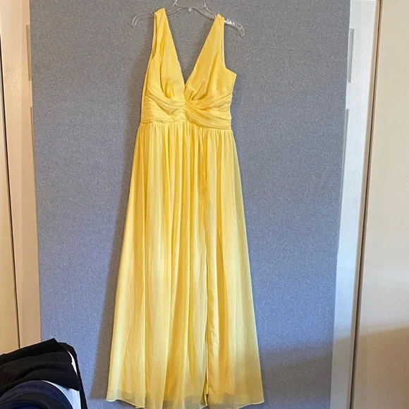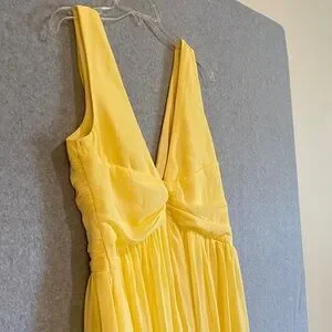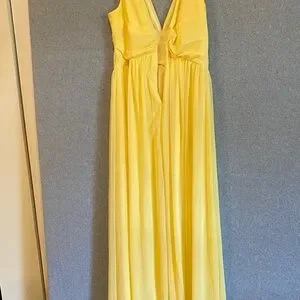 yellow evening gown, perfect for any special occasion, including fundraisers, banquets, or holiday parties, even summer weddings. The flowing design offers both comfort and style.