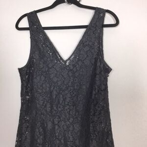 Formal black lace sleeveless dress with dress lining asymmetrical ruffle size M