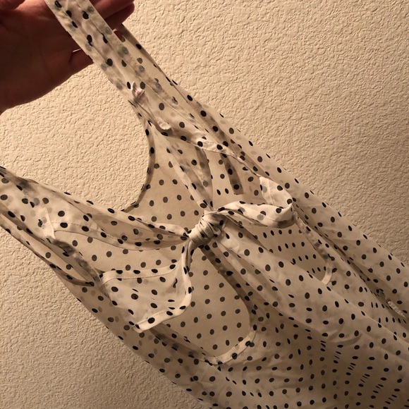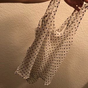 Sheer tank top with adorable back! White with black polka dots. Size small. smoke free/pet free home. This is in perfect condition.